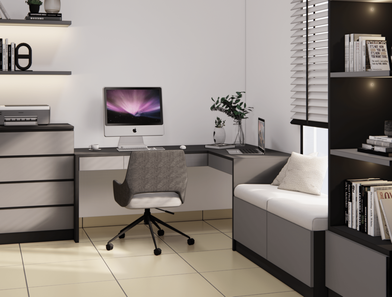 kombinasi warna putih sering di kombinasikan dengan warna netral lainnya seperti abu-abu atau beige untuk memberikan sedikit kontras