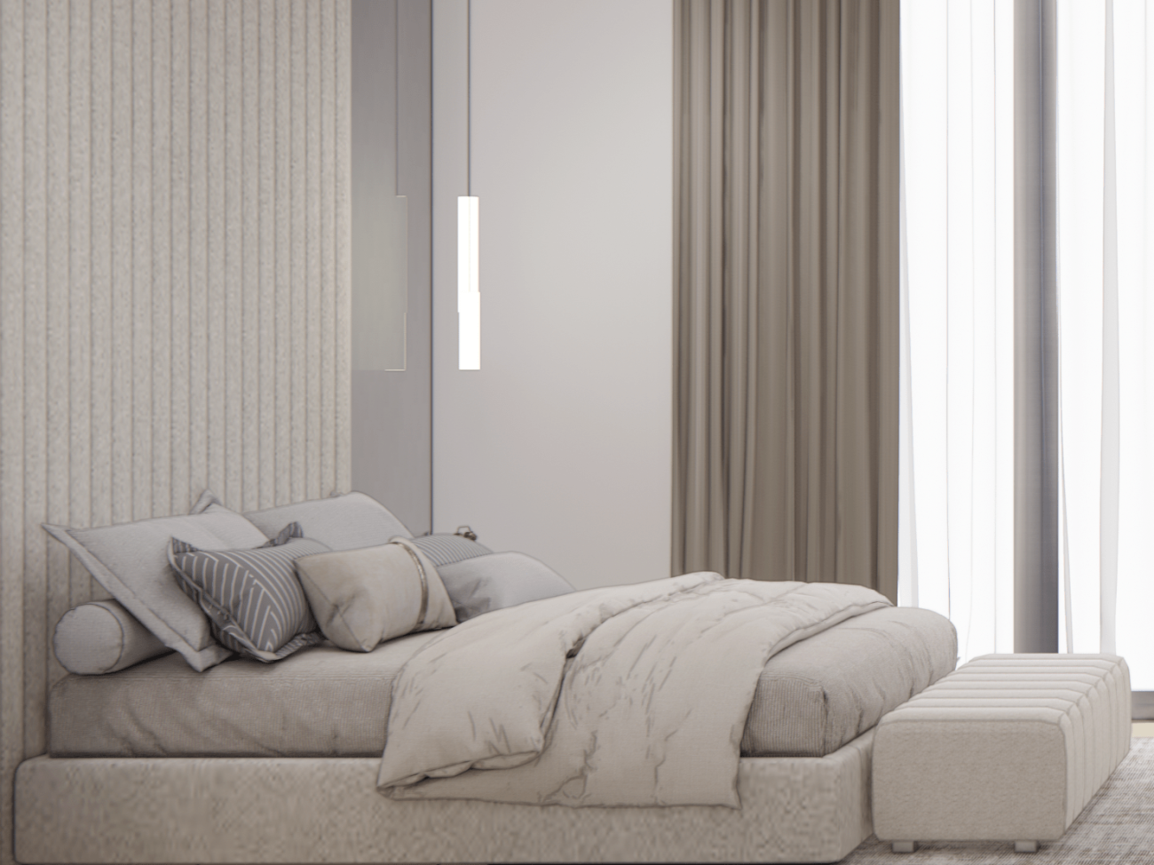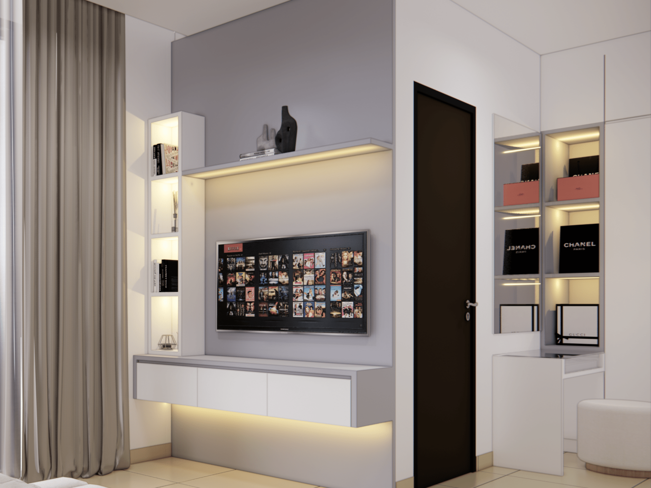 Warna putih memberikan tampilan bersih, elegan dan terang di design interior ini.